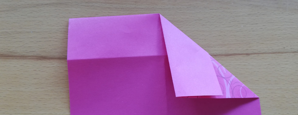 Die rechte obere Ecke zur Mitte falten. Das gleiche machst du mit der linken oberen Ecke. Einmal wenden..