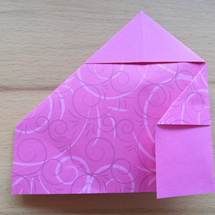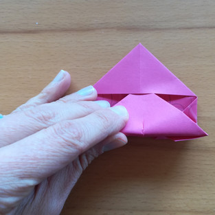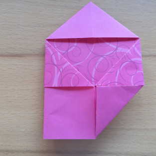 Falte nun die rechte und danach auch die linke untere Ecke nach oben, sodass jeweils unten eine Spitze entsteht.