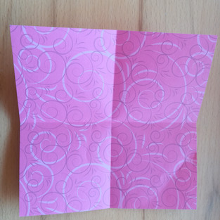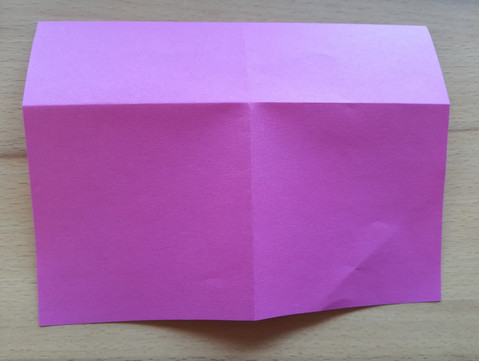 Falte das Blatt einmal in der Mitte. Wieder aufmachen und nochmal in die andere Richtung falten, sodass ein Kreuz entsteht.