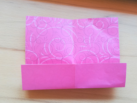 Nun falte den unteren Rand nach oben bis zur Mitte. Das Ganze einmal umdrehen.